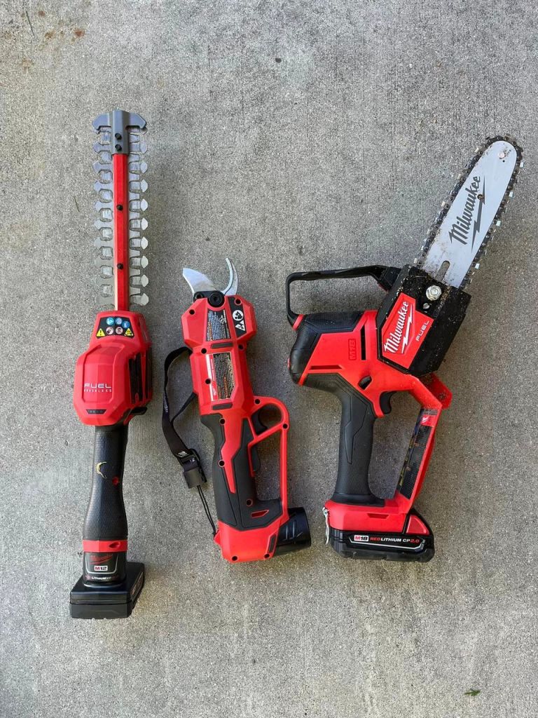 I guess I haven’t mentioned the annoying cousins of invasive grass. That would be the dozens and dozens of plum and sumac starts that have no end – also some pesky sand cherries who make an annual return. For these I used my nifty Mother’s Day gift – an amazing Milwaukee battery operated pruner!!!! Somehow I’ve become a Milwaukee Girl!