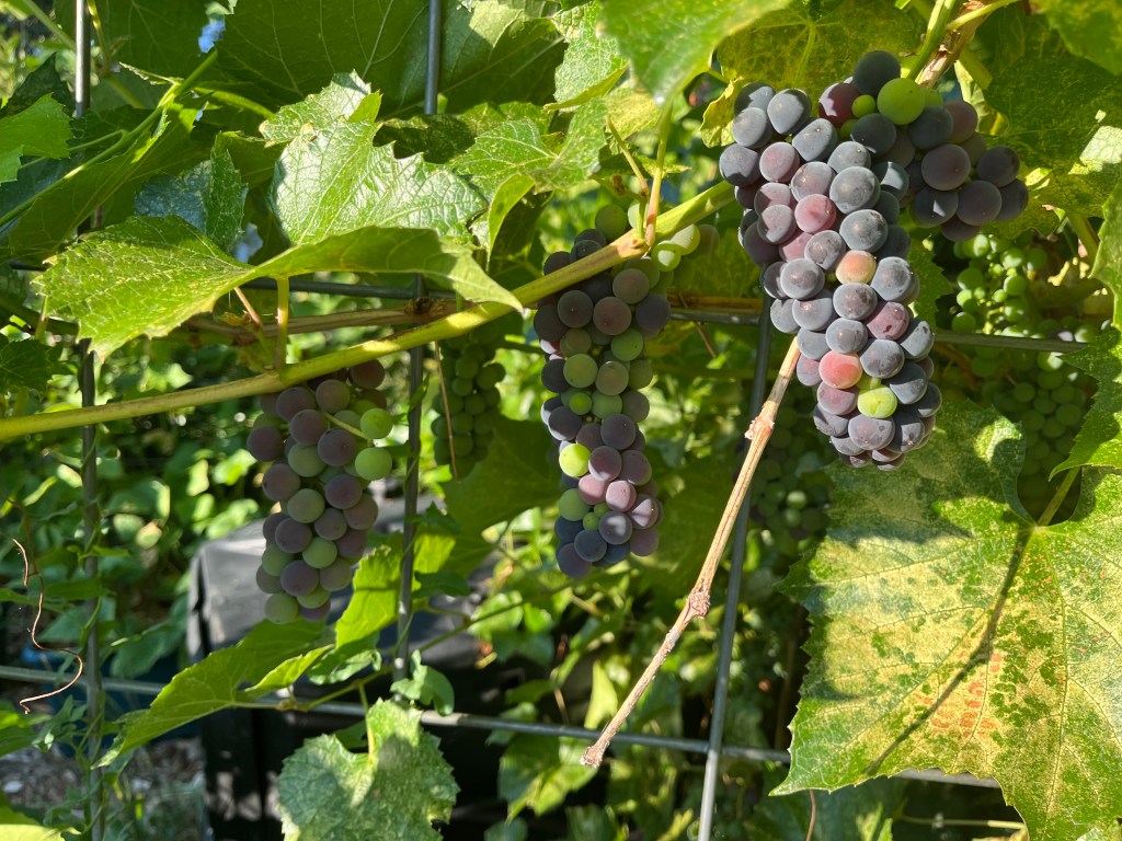When I mention to people that we have grapes, they say one of two things: Either – “oh I’ve got a bunch of those things and you can’t kill them,” or “are you kidding? I had no idea grapes grew here.” On the other hand, the birds, raccoons, and squirrels seem well aware of our successful efforts. Tom says we have Reliance, Concord, Valiant, Kay Gray, and Swenson. I’m pretty sure we also have Canadice, which are my favorite, if I can get to them before the birds pick my clusters clean as that is the bird entree’ of choice.